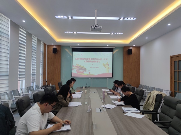 4月22日上午,日新书院党总支理论学习中心组(扩大)四月份政治理论学习在多媒体会议室召开,本次学习采用“集中学习+研讨分享”的方式进行,党总支理论学习中心组全体成员和各党支部书记参加。会议由日新书院负责人王莉主持。