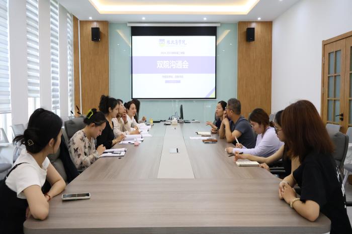 会议伊始,双方聚焦各年级学生的培养重点,进行多层次的研讨。王莉分析医学科技英语专业学生的学习现状,并通过对比近两年考研录取数据,提出三项针对性举措:一是整合校内外资源,开展分层分类的考研辅导,以确保不同基础的学生都能获得精准指导;二是深化双院融合,通过职业规划课程和企业导师结对,强化生涯指导,帮助学生明确发展方向;三是定期组织企业参观与实习实训,提升学生的实践能力与行业认知。