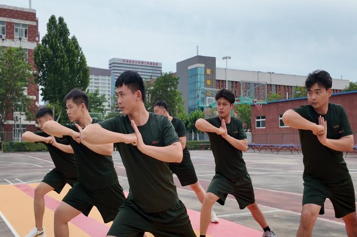 升旗仪式结束后,操场中央迅速集结起一支“老兵队伍”。“军体拳!格斗准备!”5年老班长陈奥林的声音洪亮如钟,雷厉风行的军人气质瞬间点燃全场。队员们动作整齐划一,出拳迅猛如风,踢腿干脆利落,“杀!杀!”的呐喊声震彻云霄。每一招每一式都凝聚着力量与意志,展现了退伍不褪色的军人本色,更传递着新时代青年的热血担当。