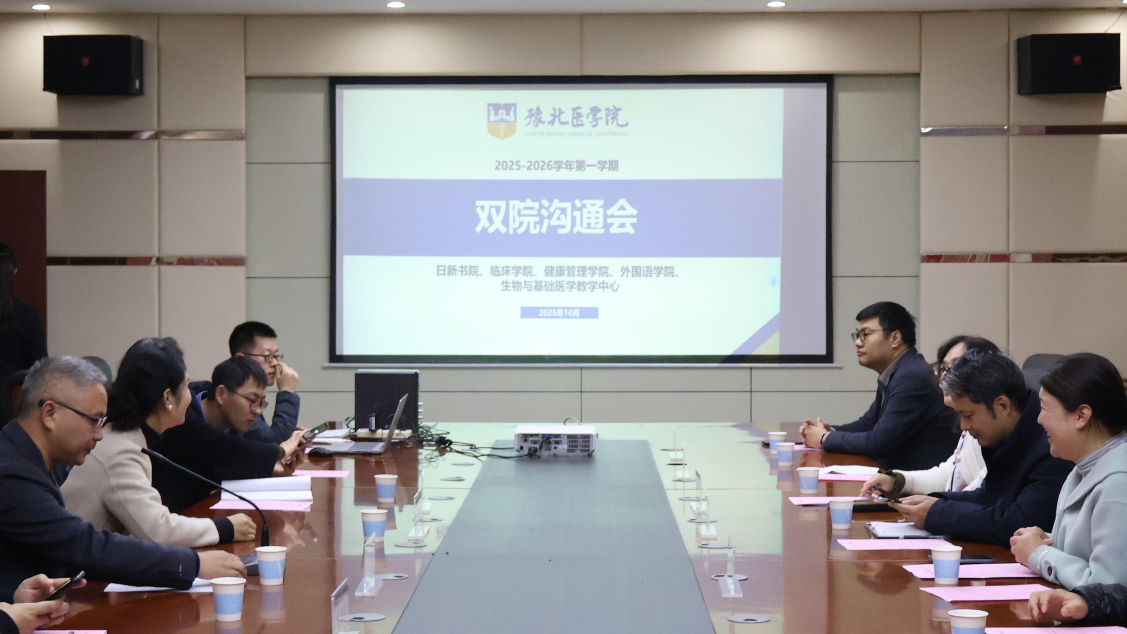为进一步打通双院育人壁垒,凝聚育人合力,10月31日上午,日新书院在综合楼二楼会议室召开以“深化双院协同 精准赋能学生成长”为主题的10月双院沟通暨学情分析会。日新书院党委书记王莉,临床学院副院长翟新博、毋乃朴,健康管理学院副院长姬丽娟,外国语学院副院长赵元雪,生物与基础医学实验教学中心副主任胡焕焕出席会议;书院辅导员、院系教师及学生代表参加会议。会议由日新书院党委副书记苗江欢主持。